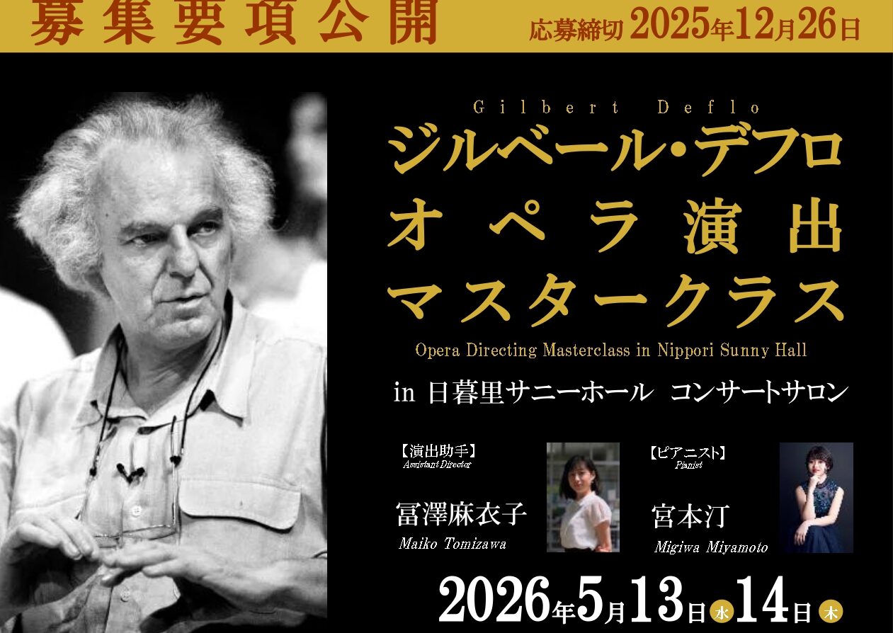 【ジルベール・デフロ オペラ演出マスタークラス】受講生募集要項