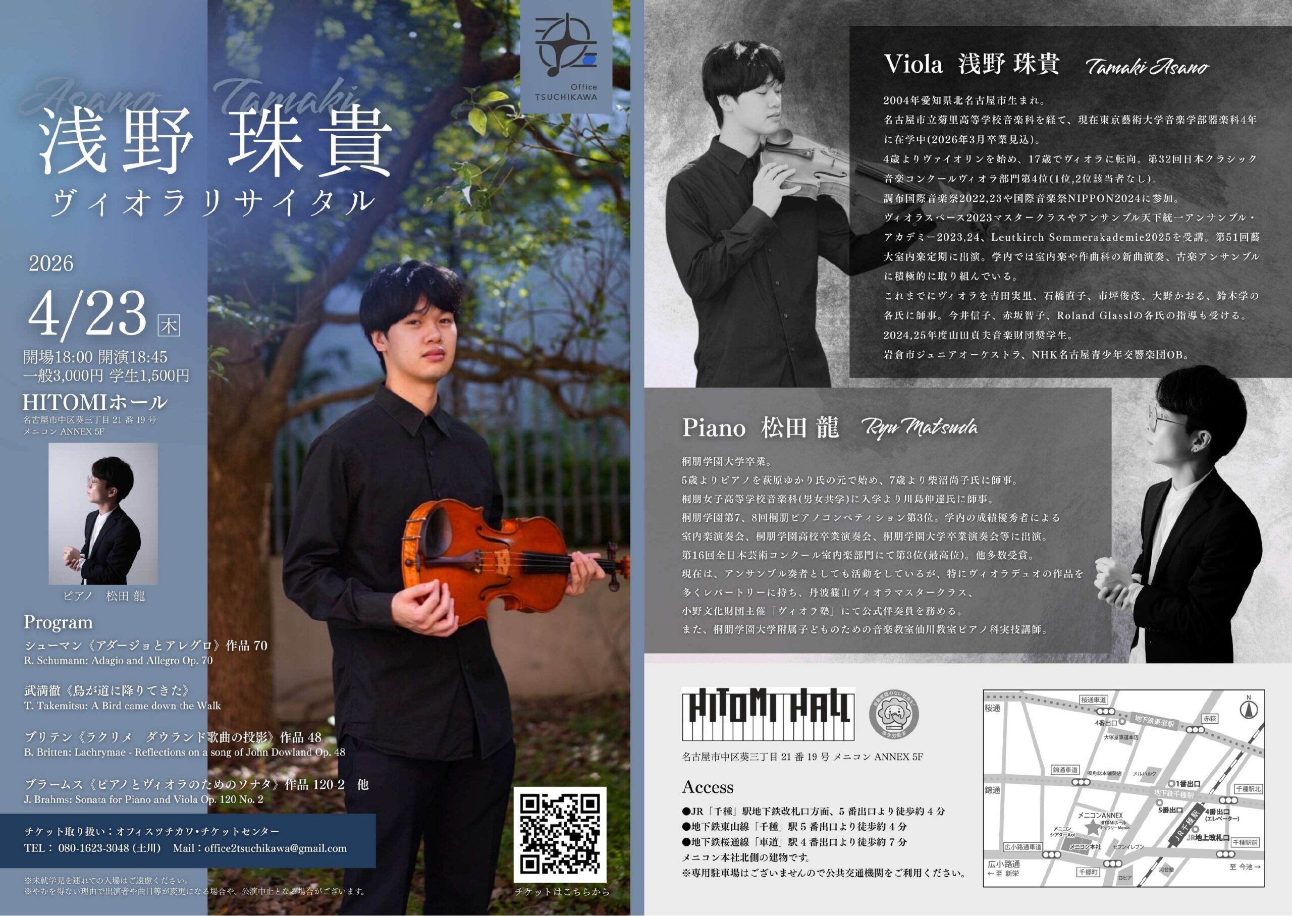 【情報解禁】浅野珠貴 ヴィオラ・リサイタル