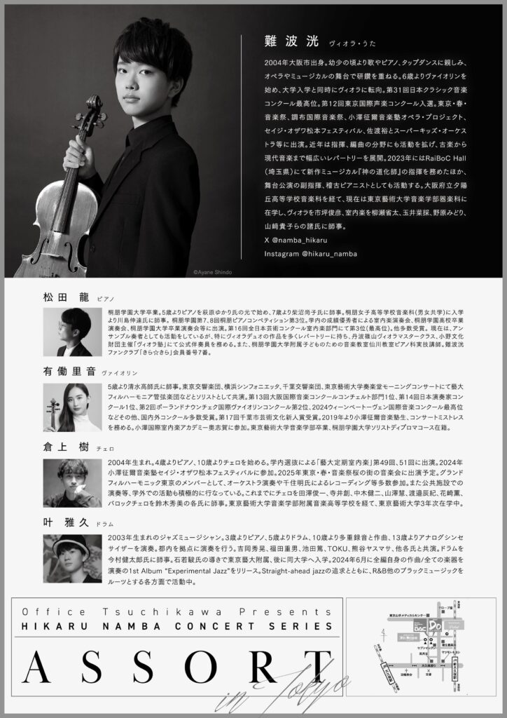 【主催】Office Tsuchikawa Presents – Hikaru Namba Concert Series “Assort” in Tokyo