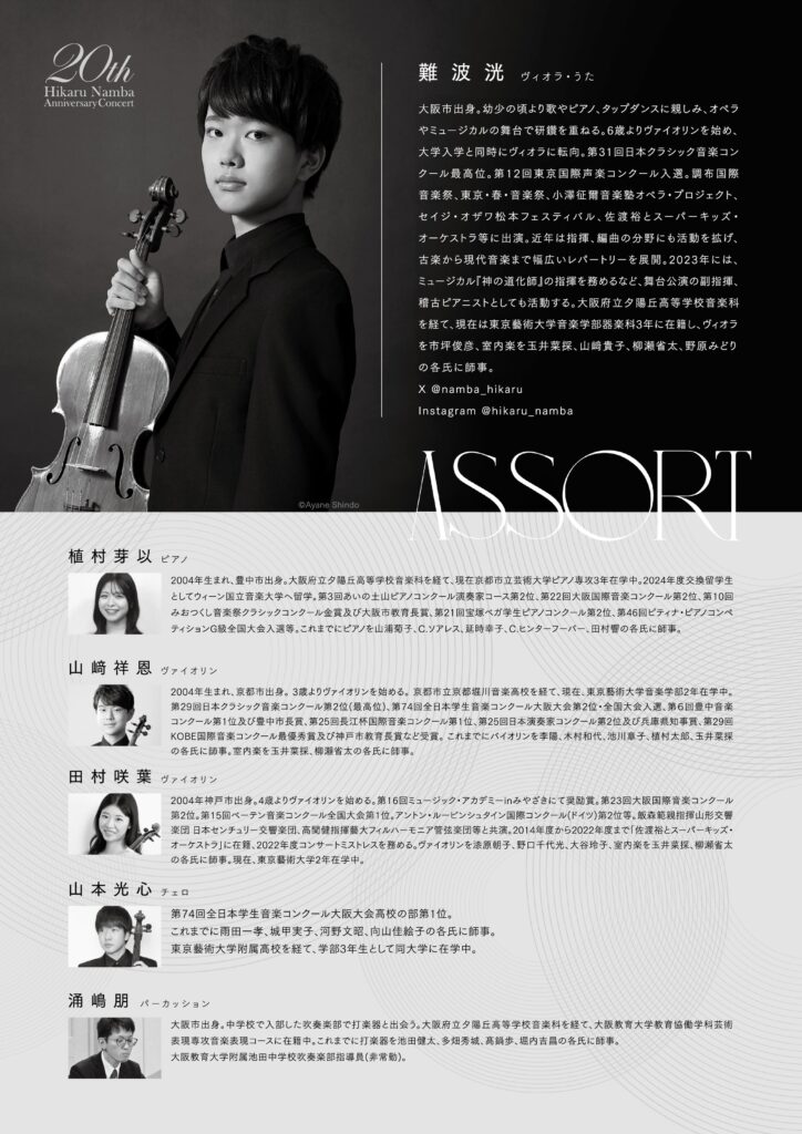 【主催】Office Tsuchikawa Presents – Hikaru Namba 20th Anniversary Concert “Assort”
